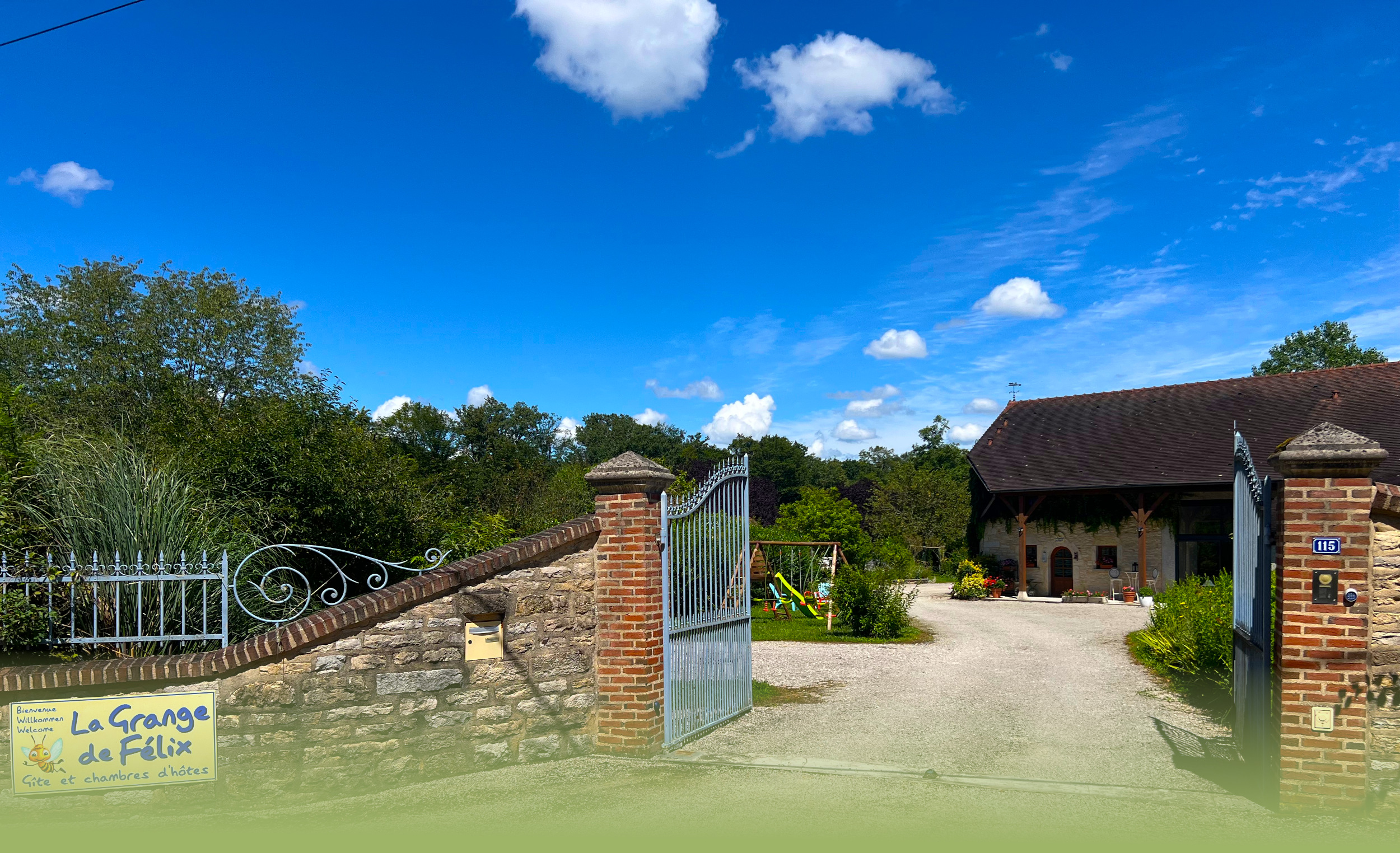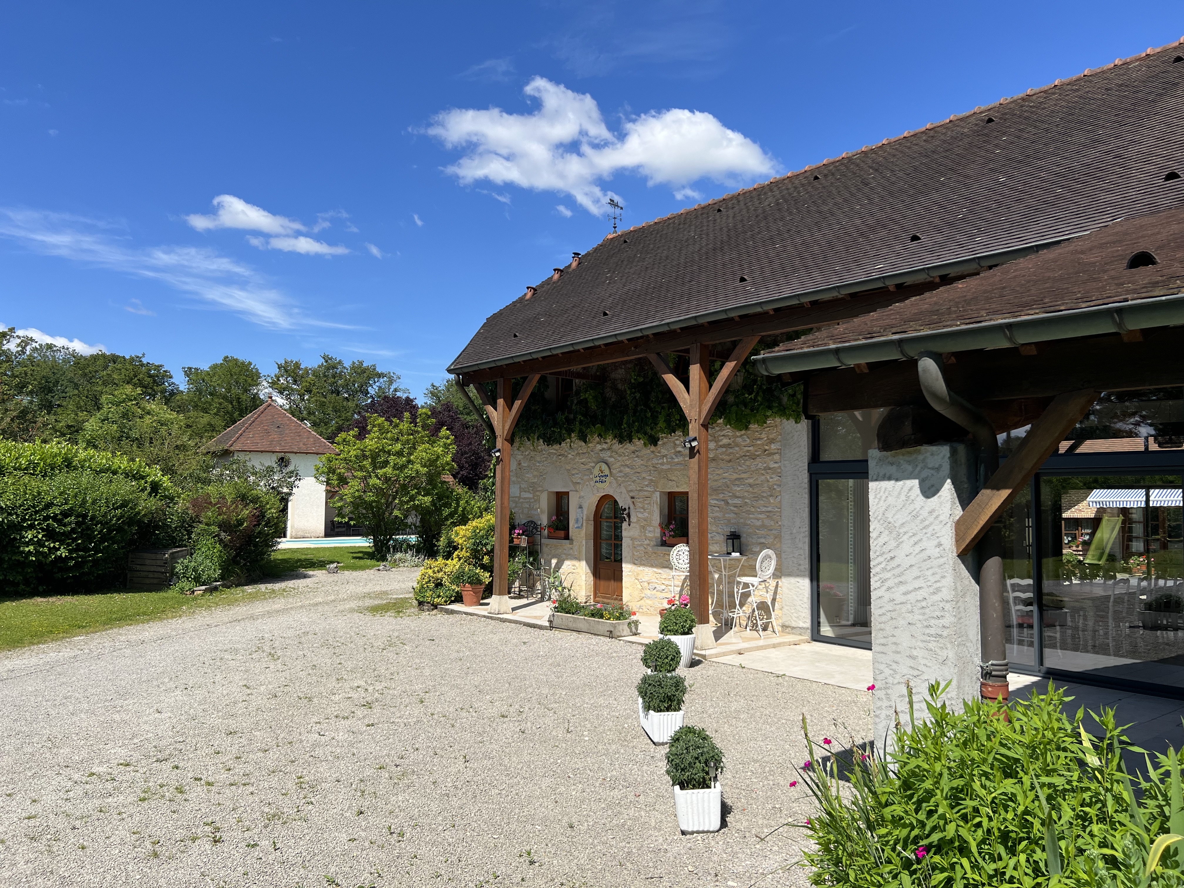 Louez la Grange de Félix (jusqu’à 10 personnes) et profitez de la maison entière avec ses 3 chambres, 3 salles de bain et wc, cuisine toute équipée, séjour, grande terrasse couverte, barbecue. Minimum 2 nuits, sans petit-déjeuner. Contactez-nous pour tout renseignement.