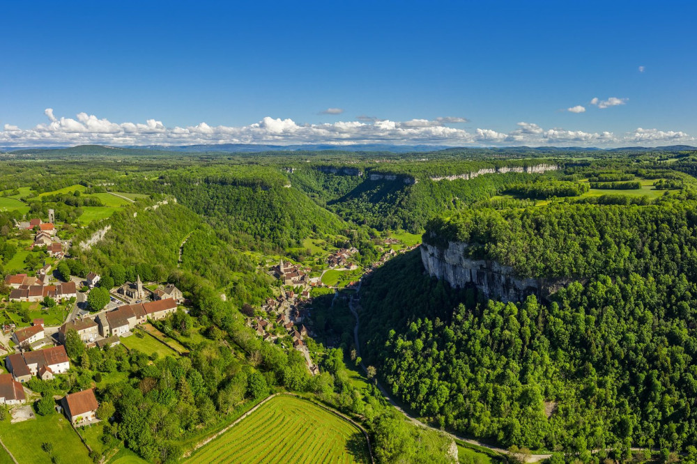 Explorez la reculée de Baume-les-Messieurs, un site naturel exceptionnel avec ses falaises majestueuses et ses cascades et qui abrite une abbaye millénaire.